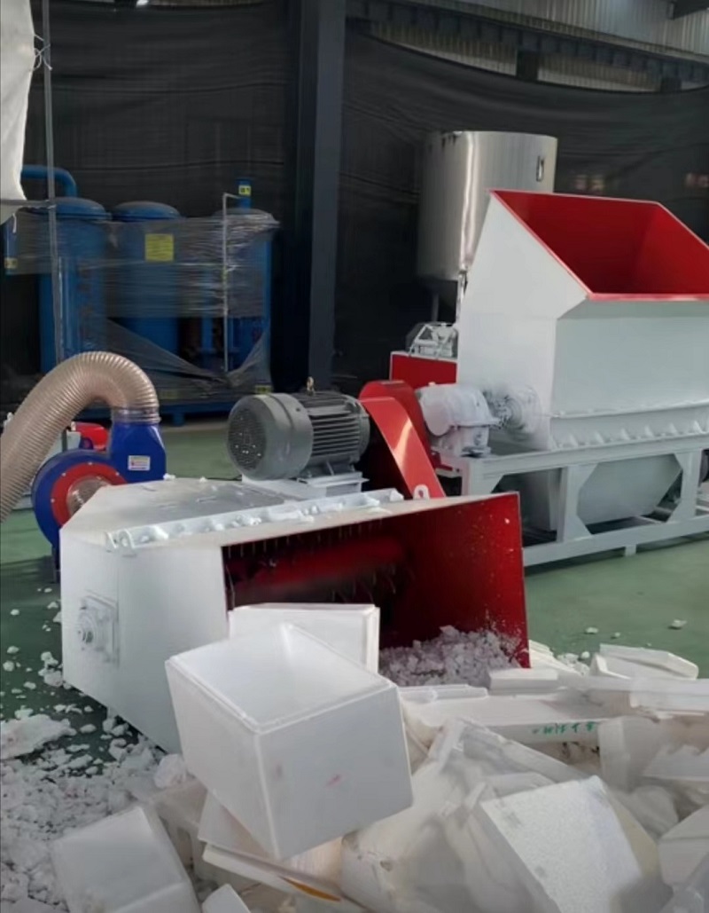 foam crusher can crush very big range of foam materials including EPS,XPS,PU,PE,Sponge etc.Like foam box,foam sheets,foam cut-offs,foam package etc.We have different models of foam crusher,they can work with horizontal hopper,vertical hopper etc.also, they can work with single shaft or two shafts etc.Beside that,we have updated the foam crusher in two aspects.